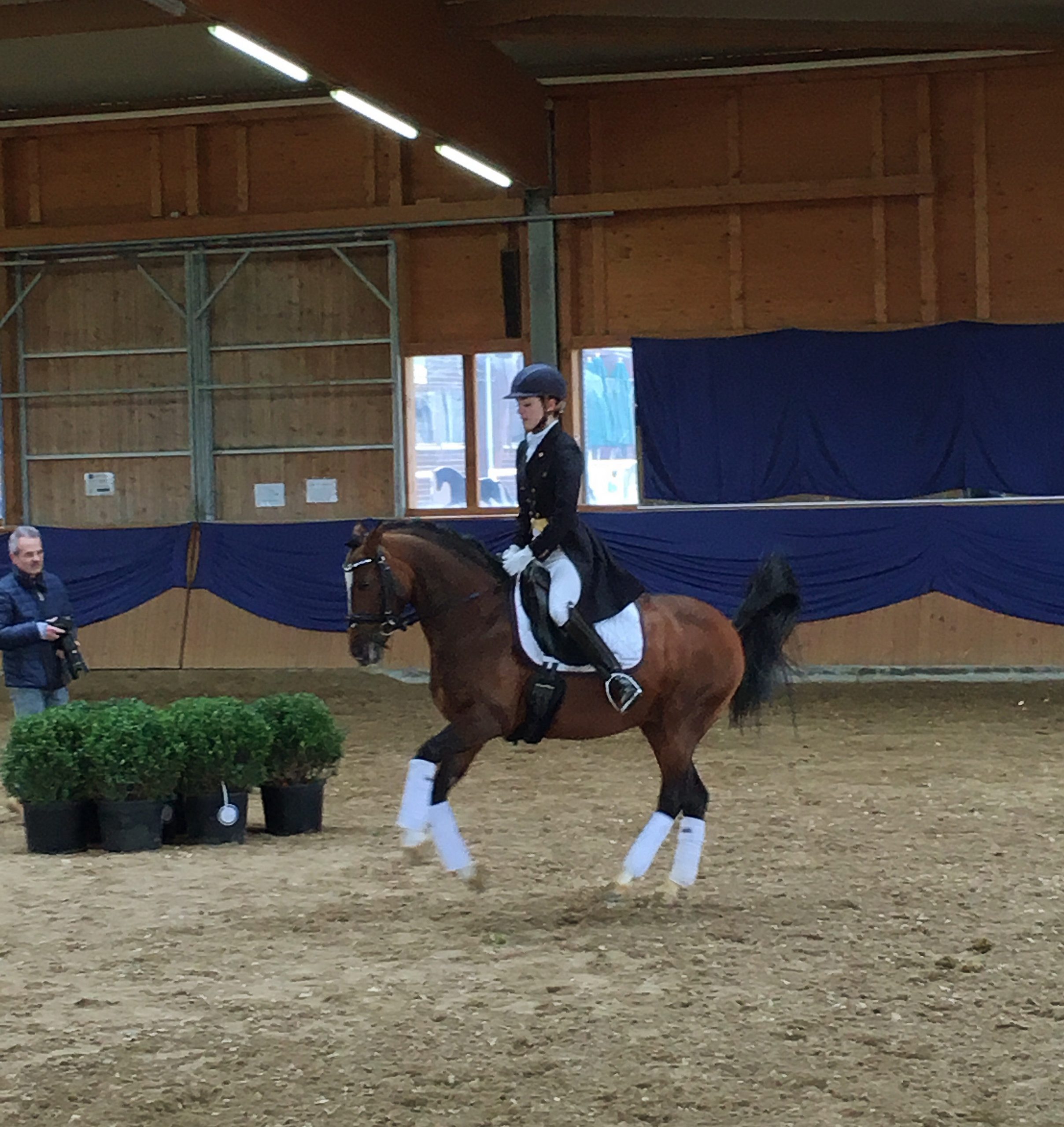 Wer nicht selbst züchten will, der kann auf dem Burghof auch ausgewachsene Reitpferde kaufen. Um einen Vorgeschmack auf die im Mai stattfindende Verkaufsschau zu bieten, sahen wir zwei Verkaufspferde namens Dacapo und Skywalker unterm Sattel. Gegen die schicken Hengste kamen sie natürlich nicht an und derzeit suche ich kein neues Reitpferd, sondern hoffe mehr, dass meiner wieder fit wird.
