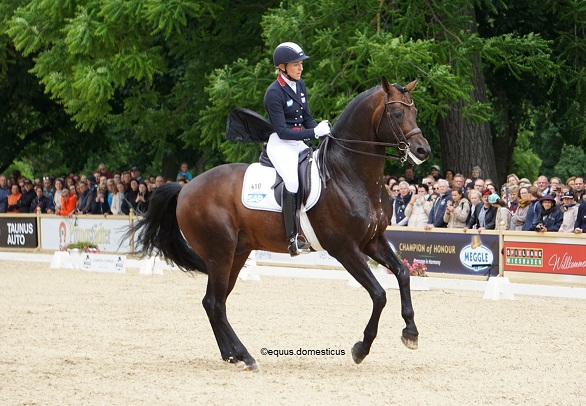 Ingrid Klimke hatte in der Dressur mächtig vorgelegt, wobei das untertrieben ausgedrückt ist, sie hat einen Weltrekord mit nur 16,4 Strafpunkten erreicht. Leider lief das Springen ziemlich schief und sie kassierte 12 Fehler durch Abwürfe. Im Gelände zeigt sie dann wieder ein brillantes Reiten und schaffte es soviel rauszuholen, dass sie am Ende auf Platz drei landete. Das ist Ingrid Klimke! Ich finde sie so bewundernswert! Leider waren beide Geländeprüfungen gefühlt viel zu schnell vorbei. Einen bleibenden Eindruck hinterließen leider manche Reiter, die wohl ganz arg mit der Balance über dem Sprung zu kämpfen hatten. Wirklich nicht schön anzusehen! Die meisten Reiter saßen zum Glück sehr gut auf dem Pferd.